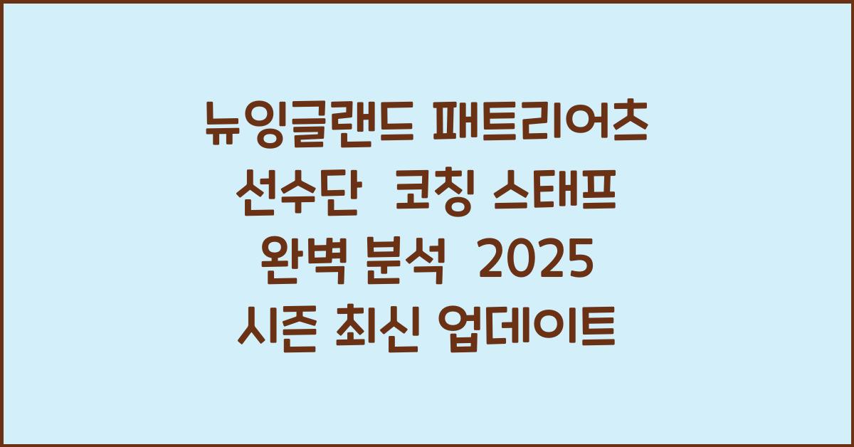 뉴잉글랜드 패트리어츠 선수단 코칭 스태프 완벽 분석 | 2025 시즌 최신 업데이트