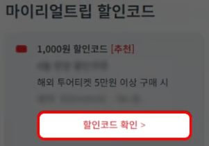 위사진은 본인이 보유하고계신 할인코드만 나타납니다. 보유 중인 마이리얼트립 할인코드가 없다면, 할인 쿠폰 등록을 하실 수 있습니다.