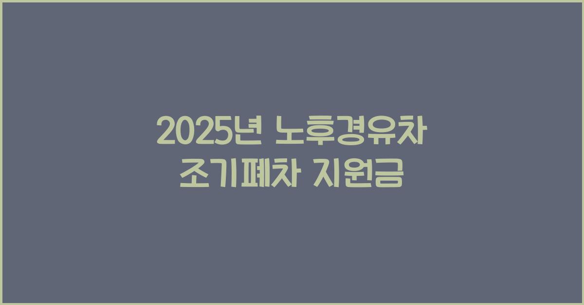 2025년에도 노후경유차 조기폐차 지원금 제도는 계속 시행되며, 미세먼지 저감과 대기질 개선을 위해 정부와 지자체가 보조금을 지원하고 있습니다.