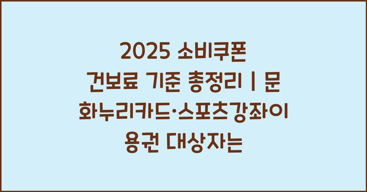 2025 소비쿠폰 건보료 기준 총정리|문화누리카드·스포츠강좌이용권 대상자는?