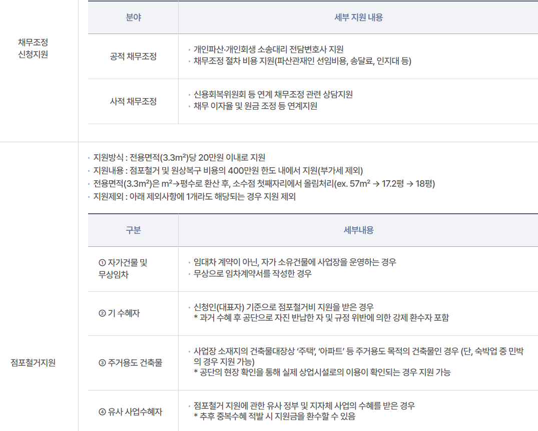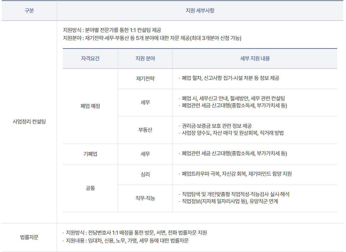 - 사업장 철거 외에도 사업정리 컨설팅 비용 지원