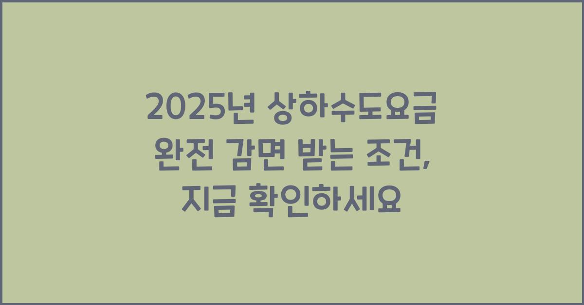 2025년 상하수도요금 완전 감면 받는 조건, 지금 확인하세요