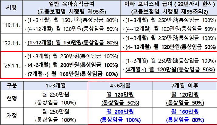 3. 2025년 육아휴직 급여 및 아빠 보너스제 주요 변경사항