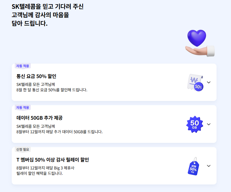 이에 SK텔레콤은 사과와 함께 해지 고객에게는 통신 위약금 환급, 기존 고객에게는 고객 감사 패키지라는 실질적인 보상을 약속했습니다.
